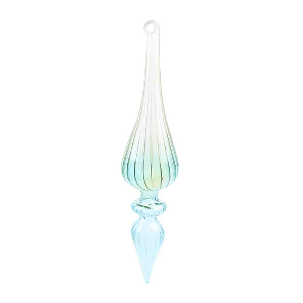 Новогоднее украшение «Сосулька» из стекла станет изысканным дополнением праздничного интерьера. Фигурка выполнена в прозрачном голубом оттенке с плавным градиентом. Изделие подвешивается на золотистую нить, которая крепится к верхушке украшения.