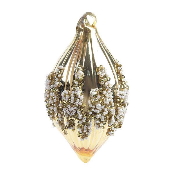 Украшение елочное Сосулька с узором из белого бисера золотистая стекло 13см