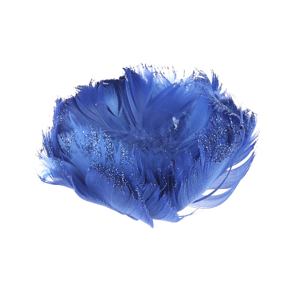 Простые и элегантные ярко окрашенные цветы изготовлены из воздушных перьев. Они покрыты перламутровым глиттером, поэтому завораживающе переливаются в лучах новогодних фонариков от гирлянды и запускают яркие блики по всей комнате. Цветок фиксируется на ёлке с помощью прищепки снизу. Он подходит также для декора интерьера.