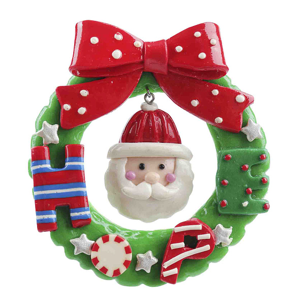 - Дизайн: новогодний венок с лицом Санты и пряничными деталями