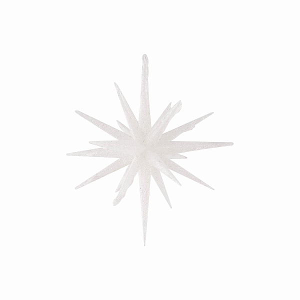 Елочное украшение в виде звезды необычной формы является олицетворением новогоднего празднества. Белый цвет украшения ярко блестит и сверкает, мгновенно заполняя комнату праздничным настроением.
