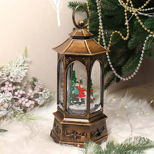 Украшение новогоднее Фонарь с фигурками внутри световые эффекты разноцветный 27см