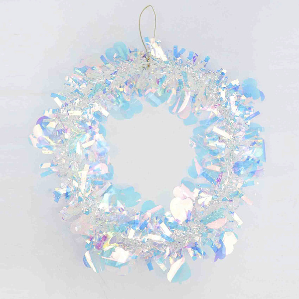 Украшение новогоднее Венок из мишуры голографический белый 30см