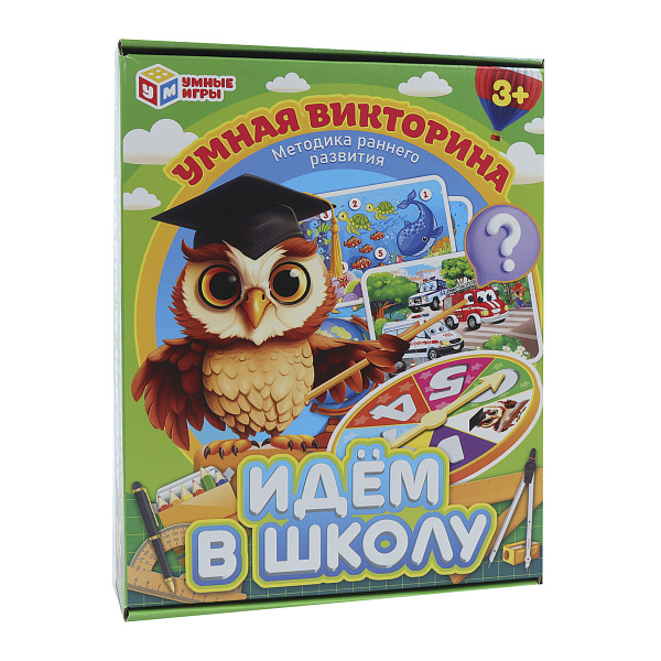 Умная викторина «Идем в школу» — это развивающая игра, созданная для подготовки дошкольников к школьной жизни. Игра включает в себя карточки с вопросами и заданиями по основным темам: математика, логика, окружающий мир, речь и письмо. Яркий дизайн с изображением совы-учительницы и красочными иллюстрациями делает процесс обучения увлекательным и ненавязчивым.