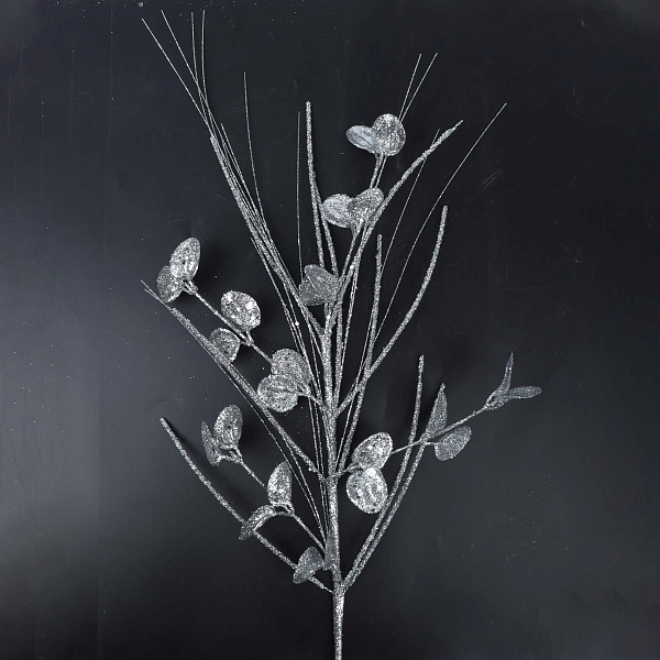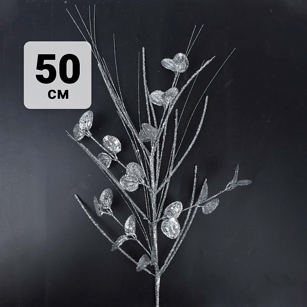 Ветка декоративная Эвкалипт блестящий серебристый 50см