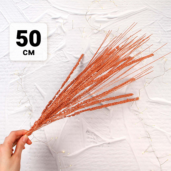 Ветка ковыль пудрового цвета высотой 50 см — декоративное изделие из пластика с эффектным блеском. Ветка украшена мелкими искрящимися элементами, придающими ей легкость и изящество. Ее нежный пудровый оттенок и воздушная форма делают ветку прекрасным дополнением к интерьерным композициям, флористическим букетам и праздничным декорам, добавляя тонкость и оригинальность в оформление.