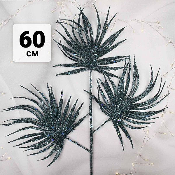 Ветка декоративная Пальма с сияющим покрытием зеленая 60см