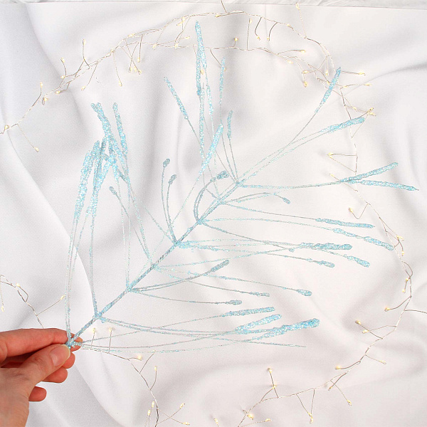 Ветка декоративная с мерцающими стеблями нежно-голубой 50см