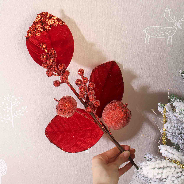 Ветвь станет эффектным дополнением к праздничному оформлению, новогодним и рождественским композициям, а также удачно впишется в стильные винтажные интерьеры, придавая им теплую и уютную атмосферу.