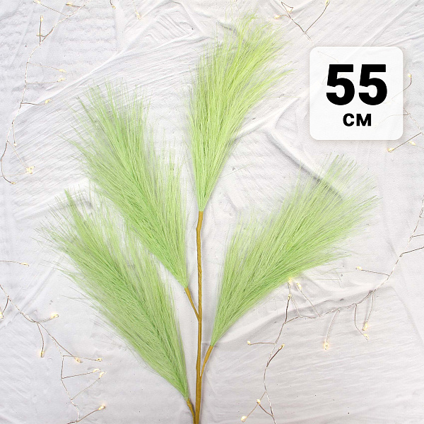 Ветка ячменя выполнена из пластика в стиле хюгге с матовым салатовым покрытием. Высота ветки составляет 55 см, что делает ее заметным декоративным элементом для интерьеров и флористических композиций. Легкая и прочная, ветка имитирует пушистые соцветия ячменя, придавая оформлению естественный и стильный вид.