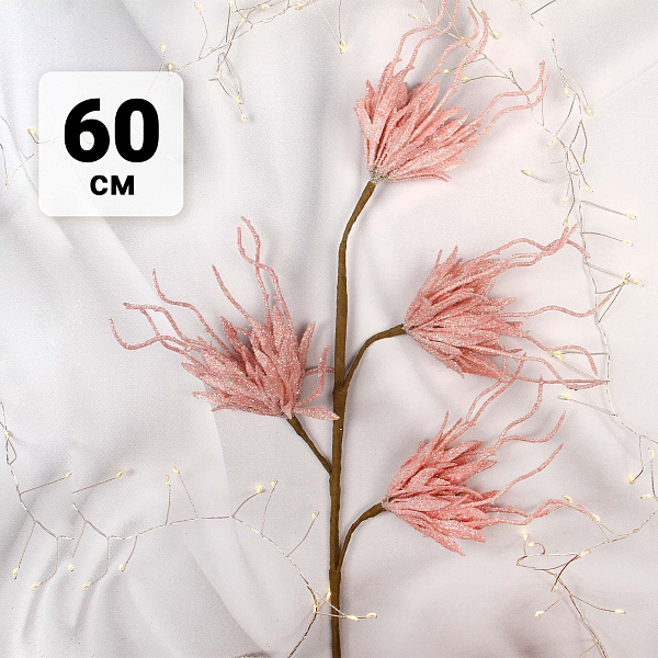 Ветка цветочная Экзотика блестящее покрытие нежно-розовый 60см