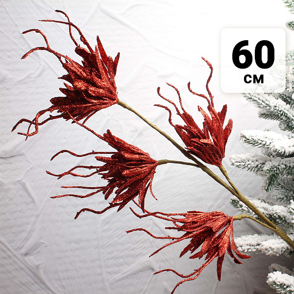 Ветка цветов Экзотика праздничное блестящее покрытие 60см красная