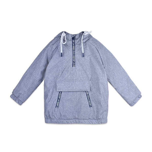От ветра и дождя малыша защитит удобная и стильная ветровка для мальчиков. Модель выполнена в светлом сером цвете. У нее объемный капюшон, размер которого регулируется с помощью завязок по бокам. В концах рукавов и в подоле вшиты резинки, которые не дают холодному воздуху проникнуть внутрь. Изделие одевается через голову. В районе горловины установлена молния с защитой от воды. Спереди пришит вместительный карман, куда можно сложить мелкие вещи.