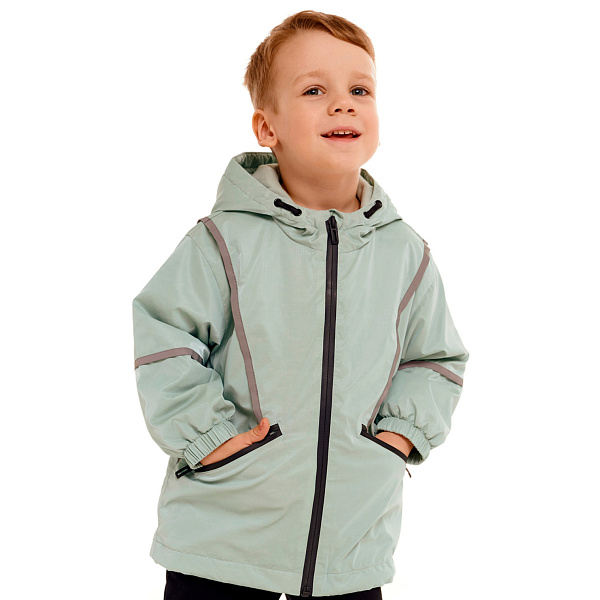 Эта удобная и стильная ветровка для мальчиков создана специально для прохладной погоды. Искусственный материал верха куртки (100 % полиэстер) защищает от ветра и дождя. Ткань приятного зеленого оттенка со светоотражающими вставками. Малыша будет хорошо видно даже в темное время суток. Благодаря большому проценту хлопка (60% – хлопок, 40% – полиэстер) в составе подкладки она приятная к телу и комфортна во время носки.