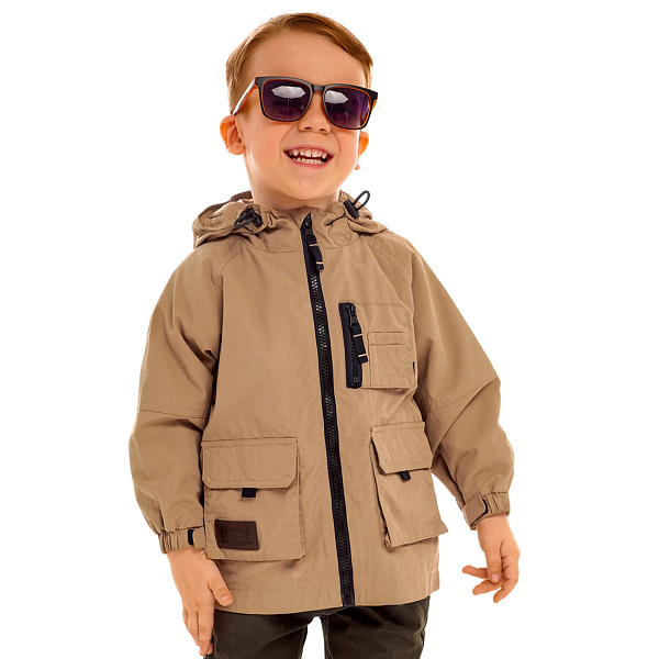 Ветровка нейтрального цвета органично дополнит сезонный гардероб маленького модника. Модель привлекает внимание многочисленными накладными карманами разной геометрической формы. Застежка в виде молнии проста в использовании. Липучки на рукавах обеспечат регулировку, защитят от холодного ветра. Глубокий капюшон выручит в случае дождя.