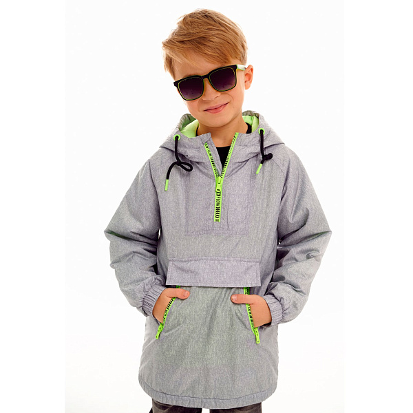 Оригинальная ветровка предназначена для мальчика. Она привлекает внимание необычным кроем, имеет глубокий капюшон. Молния доходит до середины грудки, эффектно контрастирует с основным фоном. Ребенок по достоинству оценит большой карман на животе, резинки по нижнему краю и на рукавах.