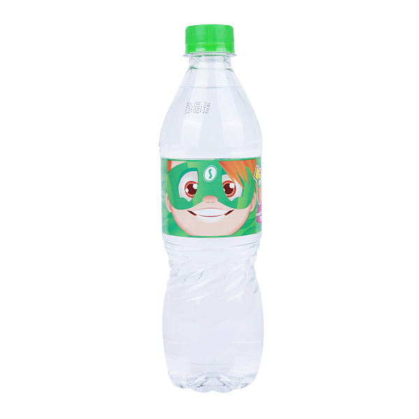 Бутылка объемом 0,5 литра имеет компактный и эргономичный дизайн, который удобно помещается в маленькой детской руке. Яркая этикетка с изображением дружелюбного персонажа привлекает внимание и делает употребление воды интересным и веселым.