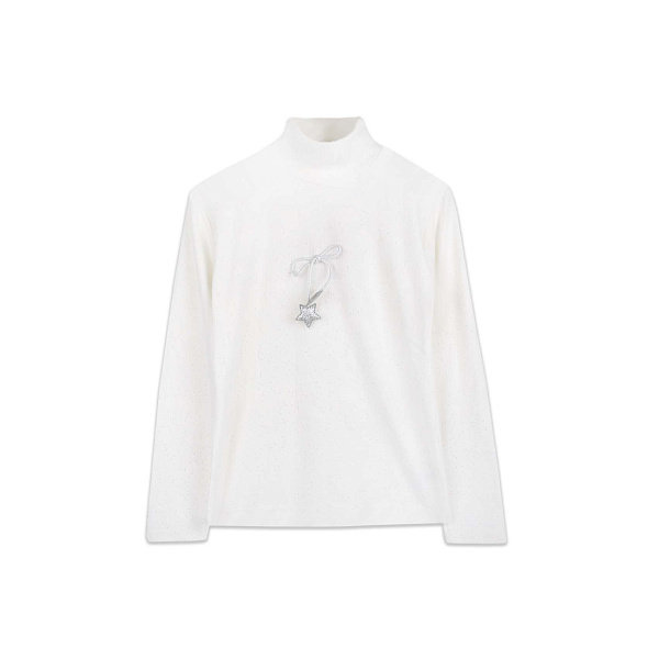 Симпатичная водолазка для девочки будет полезным дополнением в гардеробе. Она сшита из мягкого и приятного на ощупь трикотажа, хорошо смотрится на любой фигуре. Стойка воротника высокая, рукава удлиненные. На груди есть аппликация – блестящие сердечки на ниточке. Такую нарядную водолазку можно надеть на детский праздник, для выхода в театр, на концерт. Она не стесняет движений, отличается повышенной комфортностью и сочетается с любыми видами одежды.