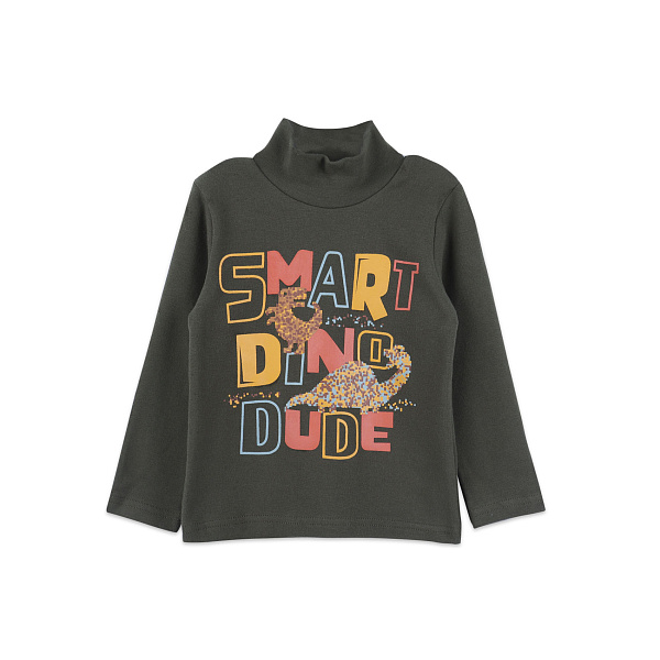 Для подрастающего ребенка чудесным решением станет водолазка. Главным элементом для ребенка является красочный оригинальный принт, расположенный по центру изделия. Водолазка средней длины и сочетается с джинсами и брюками. Небольшая по высоте горловина бережно защищает шею от ветров и холодов. В основе ткани использован натуральный хлопок и эластан. Это делает ткань мягкой и приятной на ощупь, она хорошо пропускает воздух, но при это сохраняет тепло. Рекомендовано для детей ясельного возраста.
