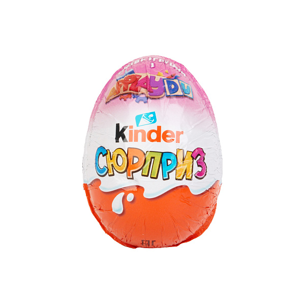 Популярное детское лакомство с сюрпризом внутри вызовет восторг у малышей. Специальная серия представляет собой игрушки для девочек и обозначается розовым цветом на этикетке яйца в верхней части. Два слоя молочного и белого шоколада представляют собой скорлупу и белок яйца, внутри пластиковой коробочки-желтка находится игрушка.