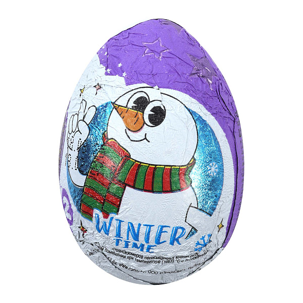 Шоколадное яйцо Конфитрейд Winter Time 20 г — сладкое шоколадное лакомство с молочным шоколадом и сюрпризом внутри. Яркая упаковка с зимним дизайном и веселым снеговиком делает продукт привлекательным для детей, особенно в период зимних праздников. Это вкусный и интересный подарок для малышей и младших школьников.