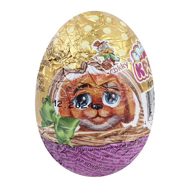 Шоколадное яйцо-сюрприз «Сладкие крохи» — это восхитительное лакомство для детей, совмещающее ароматный шоколад и коллекционную игрушку.