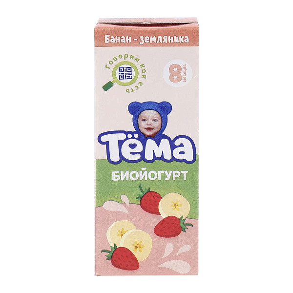 Йогурт «Тема» питьевой с вкусом банана и земляники предназначен для детей с 8 месяцев. Продукт имеет нежную и гладкую текстуру, которая легко усваивается малышами, обеспечивая комфортное введение в рацион.