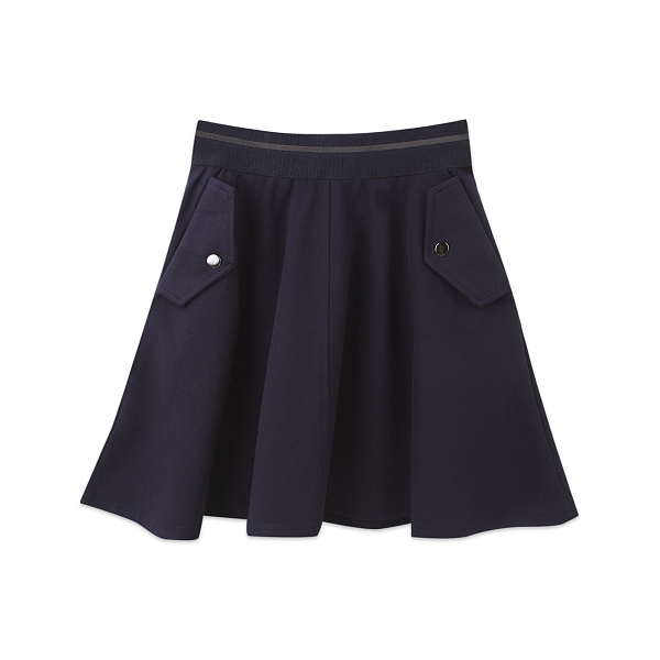 Изделие имеет расклешенную со складками форму, достаточно прочный пояс на широкой резинке, который не давит на живот. На юбке вшиты два боковых кармана с клапанами, застежка которых на пуговицах-кнопках. Такая юбка очень удобна в ношении, она износостойкая. Она пошита из смесовой ткани, хорошо сочетается с блузками, джемперами, водолазками, пиджаками и жилетами.