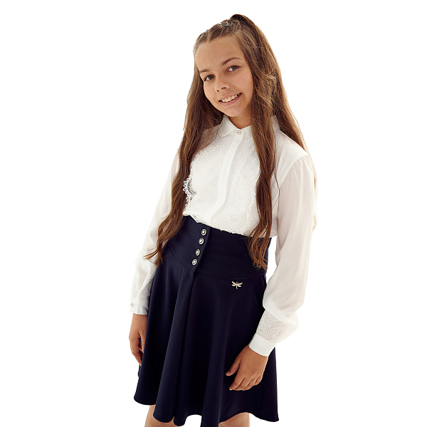 Классическая школьная юбка черного цвета придется по вкусу каждой моднице. Девочка будет выглядеть в ней стильно, а также чувствовать себя комфортно. Она органично сочетается с любым верхом, подойдет для школы. Юбка «годе» украшена брошью в виде золотистой стрекозы, а спереди застежка-обманка на четырех декоративных пуговицах. Модель выполнена из плотной ткани, устойчивой к износу. Она не мнется, легко отстирывается от загрязнений, быстро сохнет. Рекомендовано для детей школьного возраста.