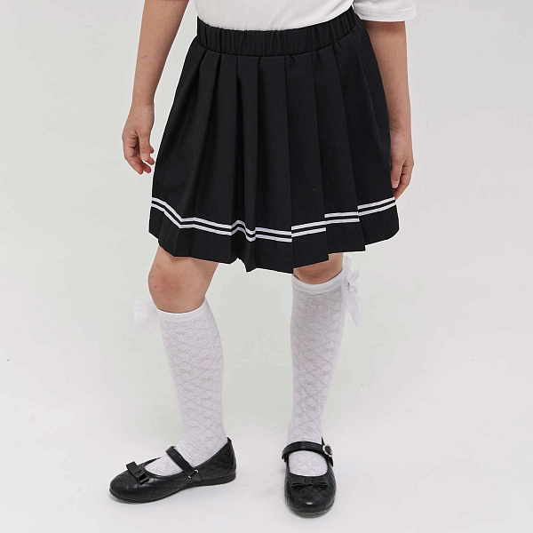 Классическая черная юбка с плиссированным дизайном создает эффектный и аккуратный образ, который подходит к любому школьному дресс-коду. Эластичный пояс обеспечивает удобную посадку на талии, позволяя комфортно носить изделие в течение дня.