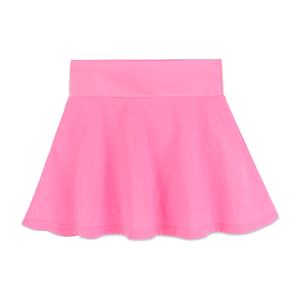 Яркая юбка удачно дополнит летний гардероб девочки, позволит ей с комфортом отправиться на прогулку в жаркий день. Модель имеет сложный крой, фиксируется с помощью широкого эластичного пояса. Изделие не ограничит свободу движений, не будет отвлекать ребенка от игр, танцев и других важных дел. Небольшая длина компенсирована миниатюрными шортами, бережно облегающими тело юной модницы.