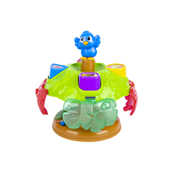 Красочную юлу приводит в движение легкий нажим на сортер в форме забавной птички, которая издает звуки приветствия. Вращение юлы сопровождается музыкой и световыми эффектами – довольные малыши не сводят глаз с «ожившей» игрушки, а некоторые даже пускаются в пляс!