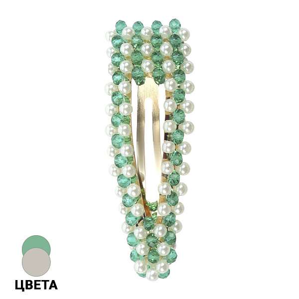 Набор заколок для волос включает в себя шесть изящных аксессуаров, украшенных бусинами и стразами. Три заколки из набора представлены в зеленом цвете, а остальные три – в серебристом, что позволяет подобрать аксессуар под настроение или наряд. Бусины расположены в несколько рядов, создавая эффект объема и блеска. Заколки крепятся на металлическую основу, обеспечивая надежное удержание волос.