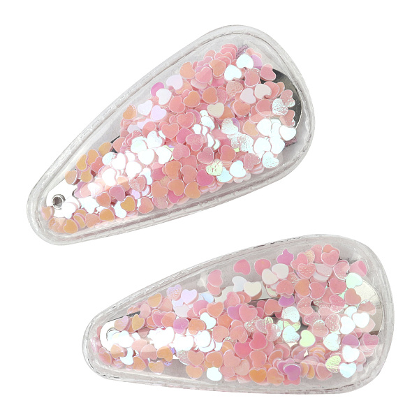 Заколки из прозрачного материала с рисунком в виде конфетти порадуют каждую модницу. В наборе представлено два аксессуара для волос одинакового стиля. Все конфетти яркие, разноцветные, видны под верхним прозрачным слоем, блестят и переливаются на свету. С обратной стороны приклеивается металлическая заколка, которая плотно держит волосы любой длины и текстуры. Легко открывается и закрывается. Заколки-конфетти украсят прическу и дополнят нежный образ вашей дочери. Есть набор с двумя заколками с нежно-розовыми, светло-фиолетовыми и разноцветными конфетти.