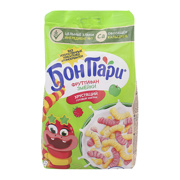 Завтрак готовый БонПари Фруттифан змейки фруктово-ягодный 200г