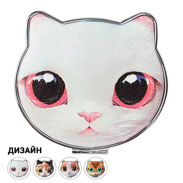 Зеркальце в форме кошечки понравится маленьким модницам своим оригинальным дизайном и функционалом. Одно из зеркал отражает предметы в натуральную величину, другое – с небольшим увеличением. При этом зеркало закрывается и удерживается в закрытом состоянии при помощи магнитного замка. Снаружи сувенир отделан тонкой экокожей, на поверхность которой нанесено печатное изображение кошачьей мордочки.