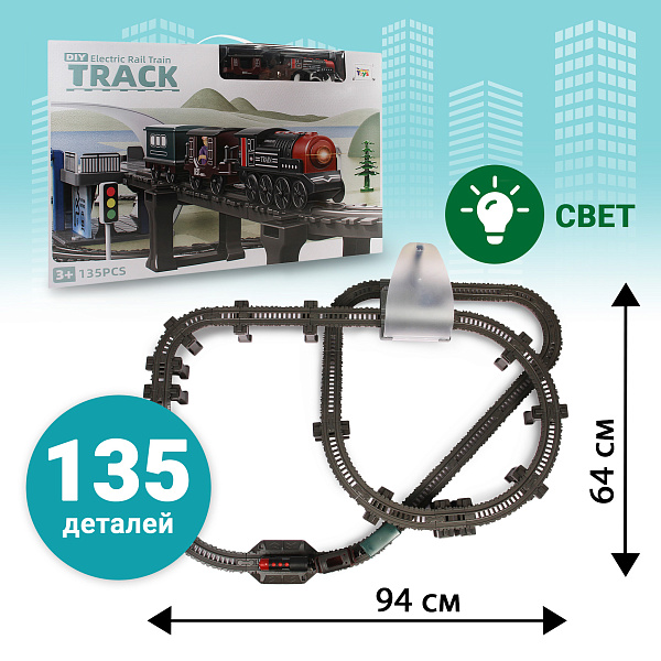 - В комплекте 135 деталей для сборки полноценной железной дороги