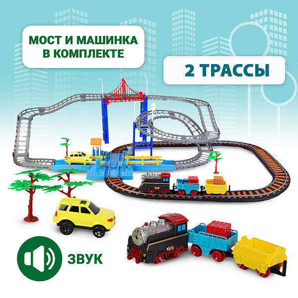 Кто же из мальчишек не мечтает о железной дороге? Этот набор состоит из двух отдельных трасс, различных по цвету для легкости сборки, по которым могут ездить автомобили и поезда, с винтовыми опасными спусками, мостом и железнодорожным переездом со шлагбаумом.
