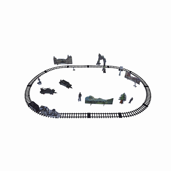Железная дорога не теряет свой актуальности и удерживает свои позиции среди популярных детских игрушек. Но военная железная дорога на ручном управлении побьет все рекорды и станет любимым развлечением вашего малыша! Ведь локомотив этой железной дороги издает световые и звуковые эффекты, и даже пускает дым из трубы. Благодаря пульту ручного управления можно легко манипулировать движением поезда по рельсам. В комплекте двенадцать рельсов, из которых можно сложить путь общей длиной 322 сантиметра. Железная дорога оснащена декорациями городов, мостов и даже горных пейзажей. В комплекте идут отцепные платформы для перевозки вертолета и танка. Железная дорога работает от батареек.