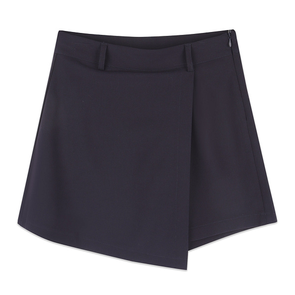 Темно-синие шорты станут удобным и практичным вариантом школьной одежды для активной и подвижной девочки. Декоративный элемент спереди имитирует юбку и делает образ женственным и утонченным. Шорты застегиваются на потайную молнию сбоку, также на поясе предусмотрены шлевки для ремня.