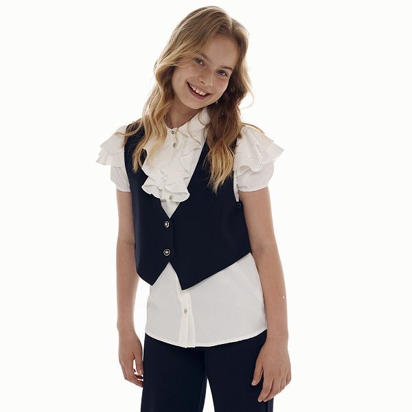 Классический черный жилет станет стильным и модным дополнением школьной формы девочки, и не нарушит при этом общепринятый дресс-код. Такой жилет подойдет к школьному платью или блузке белого цвета.