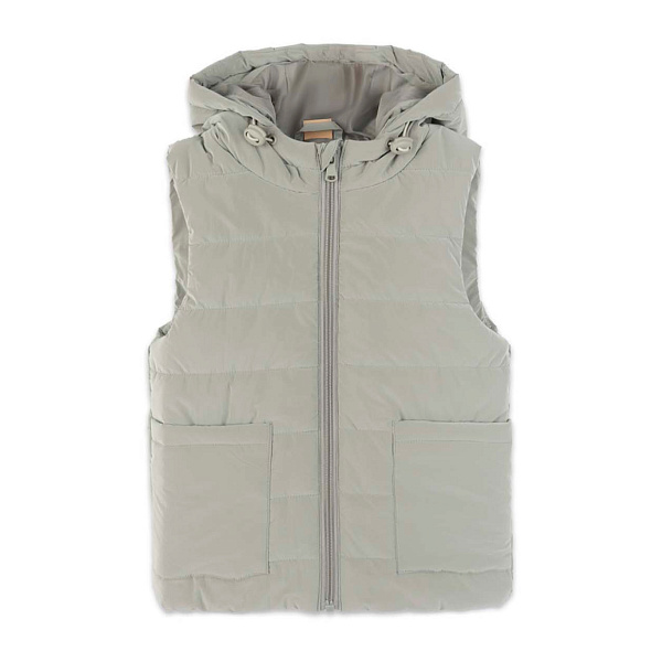 Практичным предметом демисезонного гардероба любой девочки послужит утепленный жилет. Модель отличается лаконичным дизайном, застегивается на молнию. В верхней части застежки предусмотрен клапан, исключающий защемление кожи на подбородке. Глубокий капюшон с утягивающей резинкой и пара накладных карманов призваны обеспечить комфорт ребенку во время прогулки.