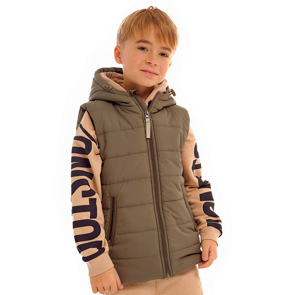 Демисезонный жилет – обязательный атрибут для прохладной погоды. Удобный фасон, вшитый капюшон, наличие карманов с застежками-молниями, специальные резинки с регулируемой длиной – все, что необходимо для полной защиты от дождя и ветра. Жилет изготовлен из непромокаемой ткани, дополнен искусственным теплоизолирующим наполнением, имеет небольшой вес. В качестве элементов безопасности использован светящийся принт, расположенный сзади в нижней части.