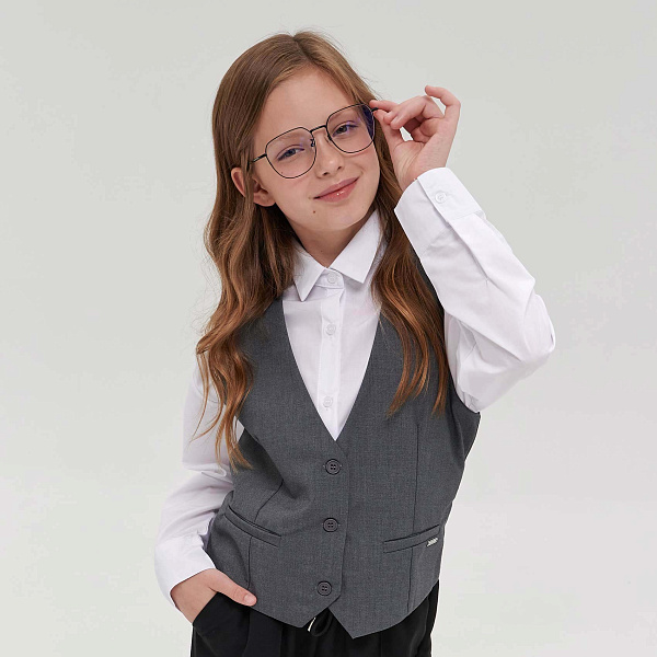 Классический жилет темно-серого цвета для девочки — это стильный, удобный и долговечный элемент школьной формы, который станет отличным дополнением и к юбке, и к брюкам.