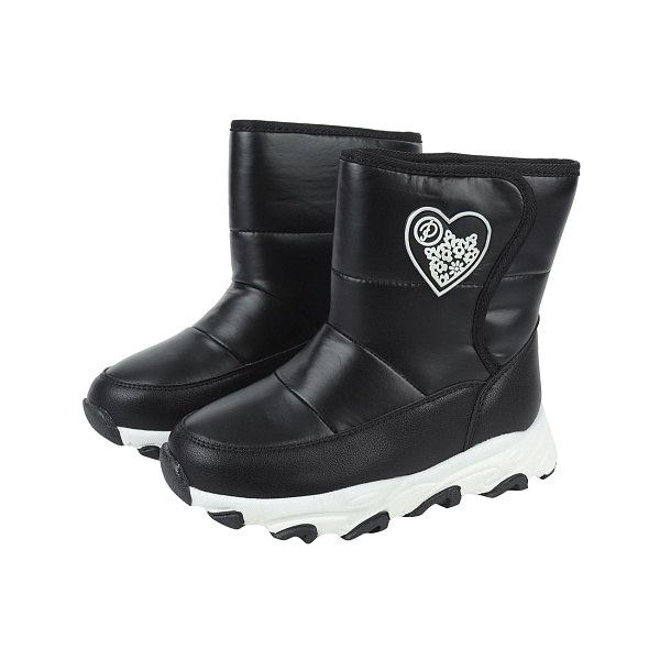 Зимние снобутсы черного цвета точно понравятся маленькой принцессе. Внешняя сторона обуви изготовлена из комбинации текстиля и кожи. Сочетание материалов делают обувь не склонной к царапинам, хорошо пропускают воздух и сохраняют тепло. Подкладка и стелька из шерсти подарит ногам тепло, мягкость и комфорт в носке. Толстая рельефная подошва из ТПР препятствует скольжению, устойчива к низким температурам и равномерно распределяет нагрузку на стопы. Для застежки использована оригинальная липучка, она расположена сбоку и не выделяется на ботинке, застежка декорирована сердечком.