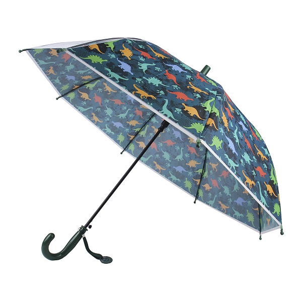 Яркий зонт для мальчиков с динозаврами станет отличным аксессуаром в дождливую погоду. Его купол сделан из прочного POE-материала, который надежно защищает от дождя. Прозрачный сектор позволяет ребенку свободно видеть окружение, добавляя ощущение безопасности и создавая интересный визуальный эффект. Ручка удобной формы легко помещается в детской руке, что позволяет комфортно и без усилий держать зонт во время прогулок.