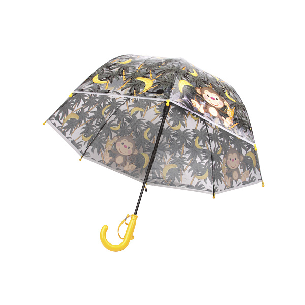 Практичный дизайн зонта понравится каждому ребенку. Изогнутая ручка и пластиковые наконечники на спицах делают использование аксессуара безопасным. Оригинальная форма купола обеспечит надежную защиту от дождя и ветра. Прочное крепление ткани к стальному каркасу исключает повреждения от сильных порывов ветра. Простой механизм позволит без труда открыть и закрыть изделие по мере необходимости. Все применяемые материалы обладают большим запасом прочности. Дополнительный элемент – небольшая бирка на ручке, куда ребенок сможет вписать свое имя, чтобы не потерять зонтик.