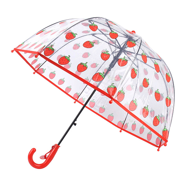 Очаровательный детский зонт с оригинальным рисунком, выполненный из 100% полиолефина, станет надежным спутником в дождливую погоду. Прозрачный купол украшен ярким принтом с клубничками, что делает его привлекательным и радостным для маленьких девочек.