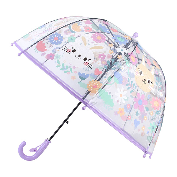 Каркас зонта выполнен из прочного металла, обеспечивает высокую устойчивость и долговечность. Удобная фиолетовая ручка в форме крюка идеально ложится в руку, позволяя легко удерживать зонт даже при ветреной погоде. Конструкция рассчитана на простое открытие и закрытие, что особенно важно для ребенка.